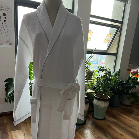 Comfortable 100% Cotton Waffle Robe With Piping for Hotel & Spa & Home