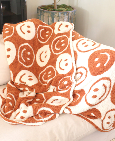 カスタムロゴ写真小道具寝具スロー家の装飾笑顔パターンニット毛布笑顔ソフトスローブランケット
