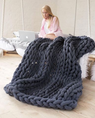 シームレス特大高品質ビッグサイズハンドメイドブランケットコットンチューブケーブルニットヘビースローチャンキーウォームウェイトブランケット